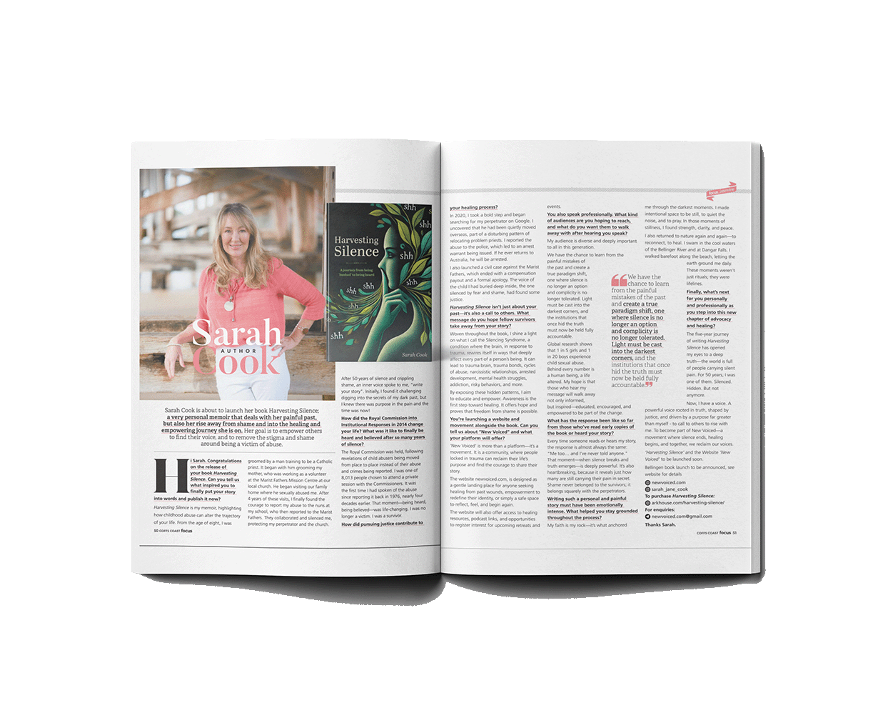 Sarah recently sat down with Focus Magazine to talk about Harvesting Silence, her deeply personal memoir. She shares her journey from a painful past, moving away from shame and into healing and empowerment.
